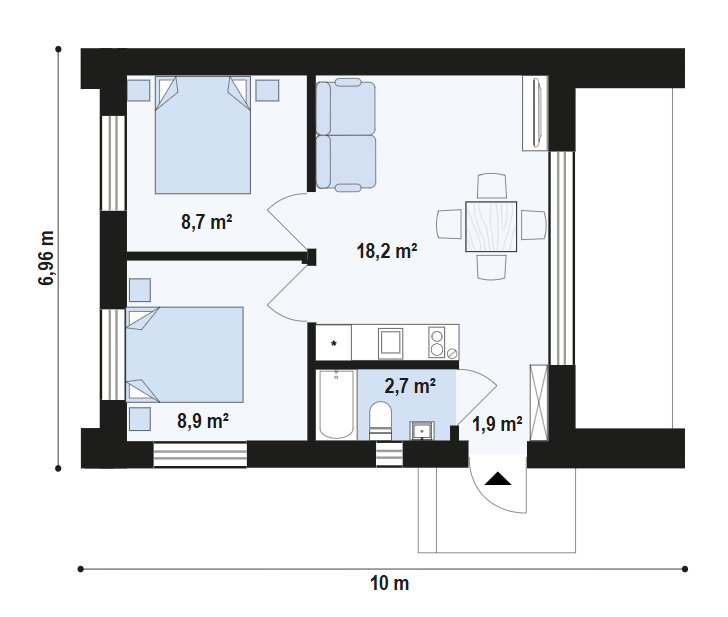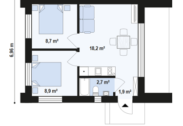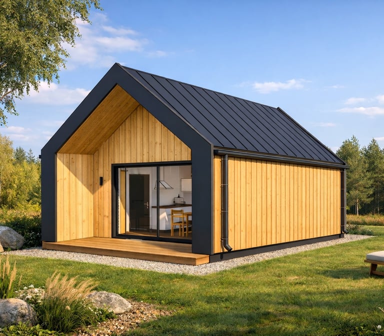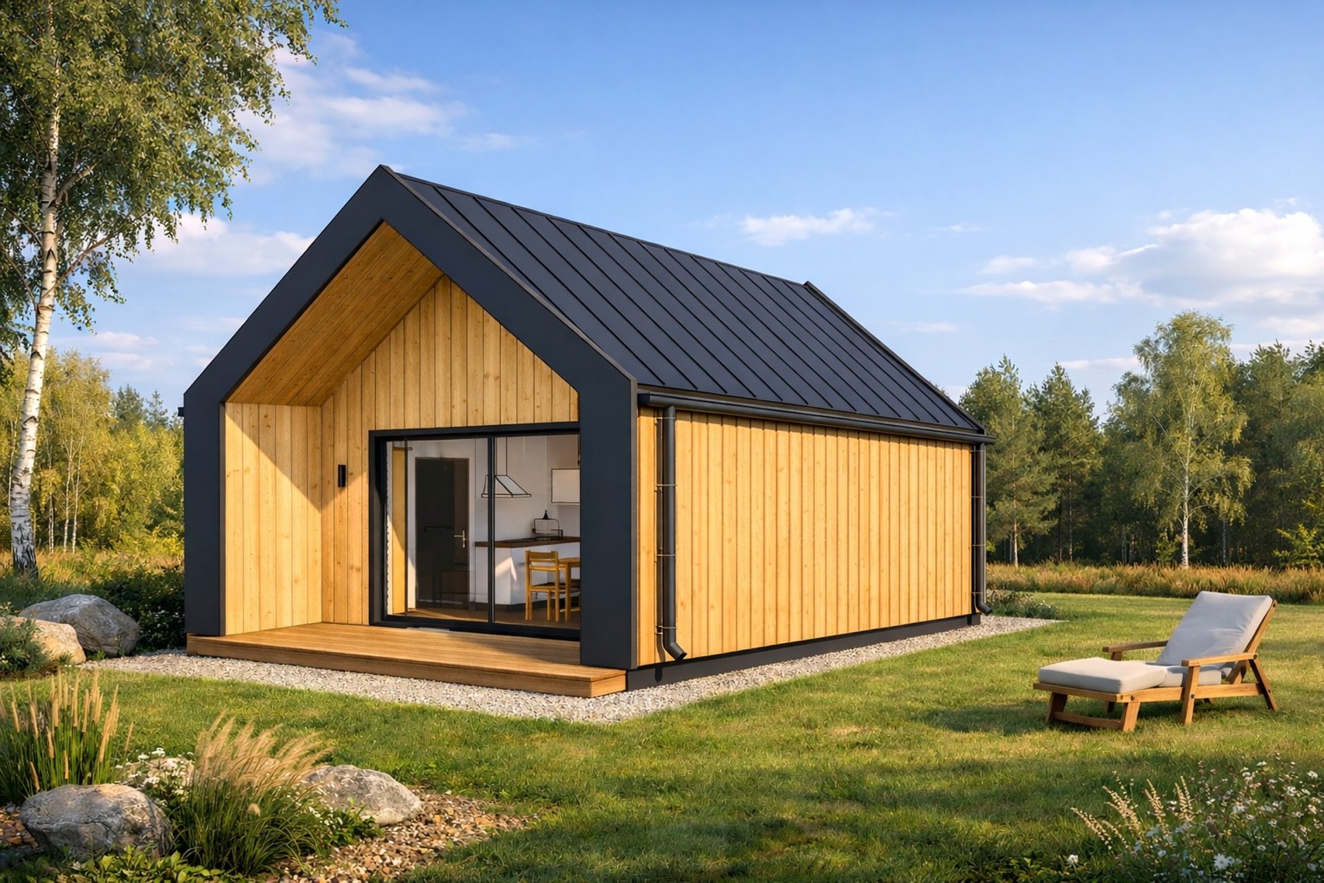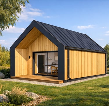 Dom Z389 B to nowoczesny, piętrowy dom drewniany o powierzchni 40 m². Charakterystyczna bryła budynku, z minimalistycznym designem, łączy estetykę z komfortem użytkowania.