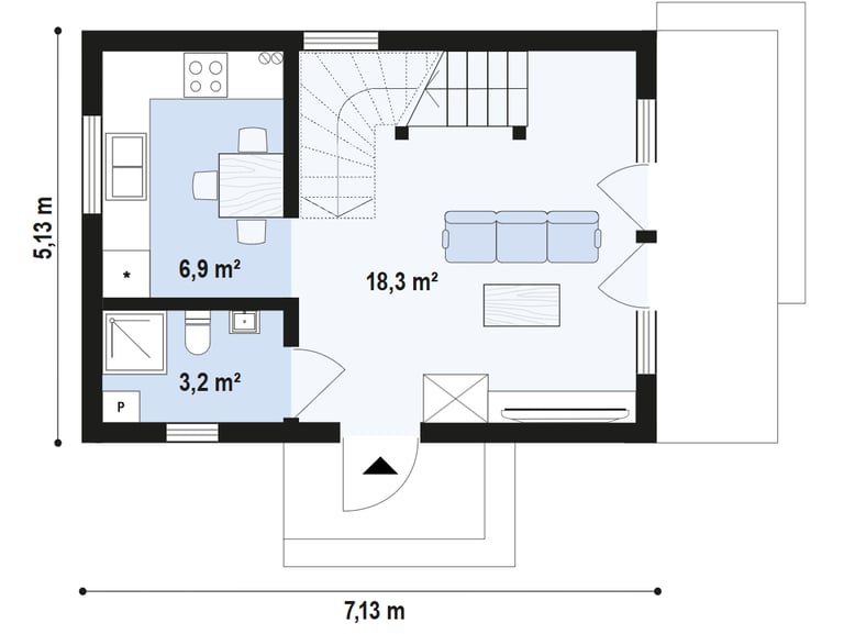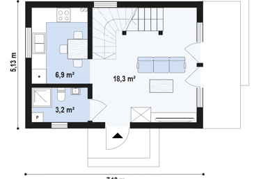 Mały przestronny dom z poddaszem w technologii szkieletowej